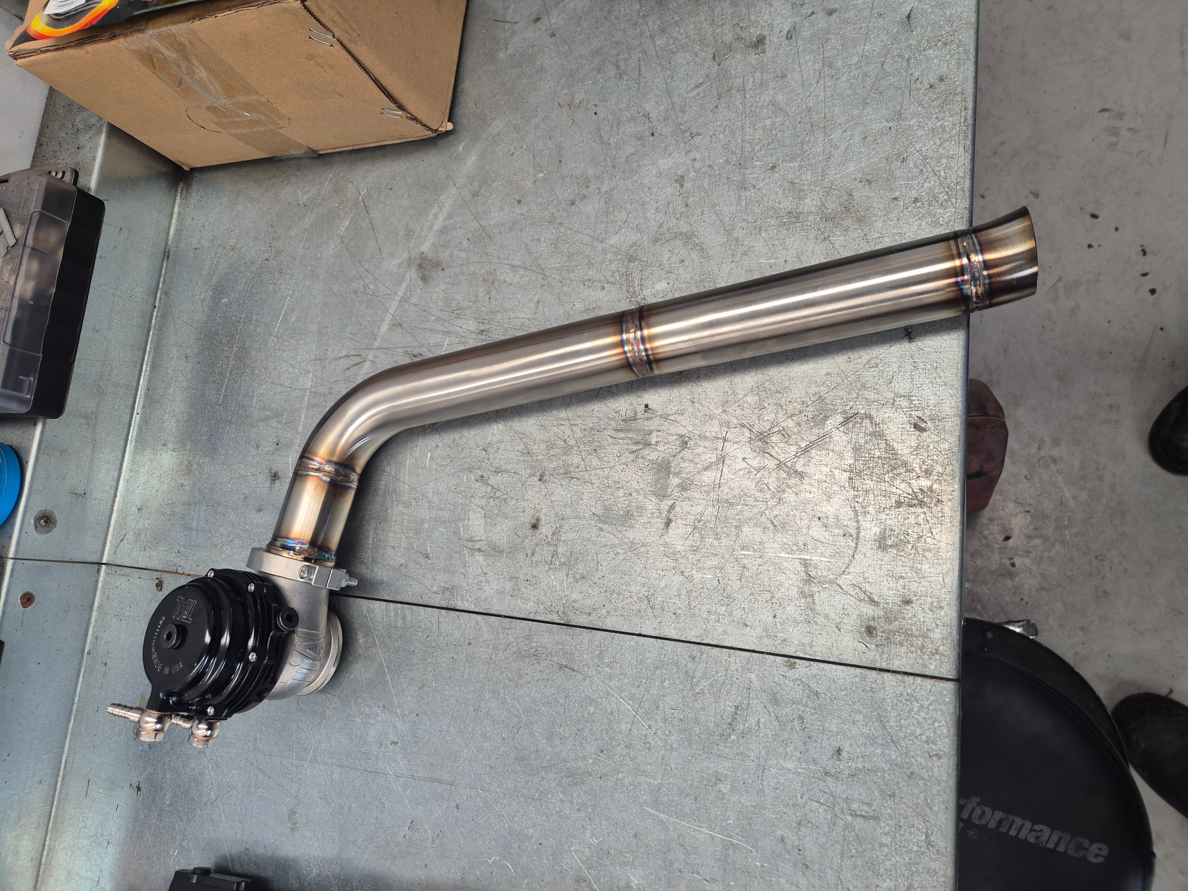 Custom stainless steel wastegate dump pipe designed for a Skyline drift car. Made for strength, performance, and track reliability.