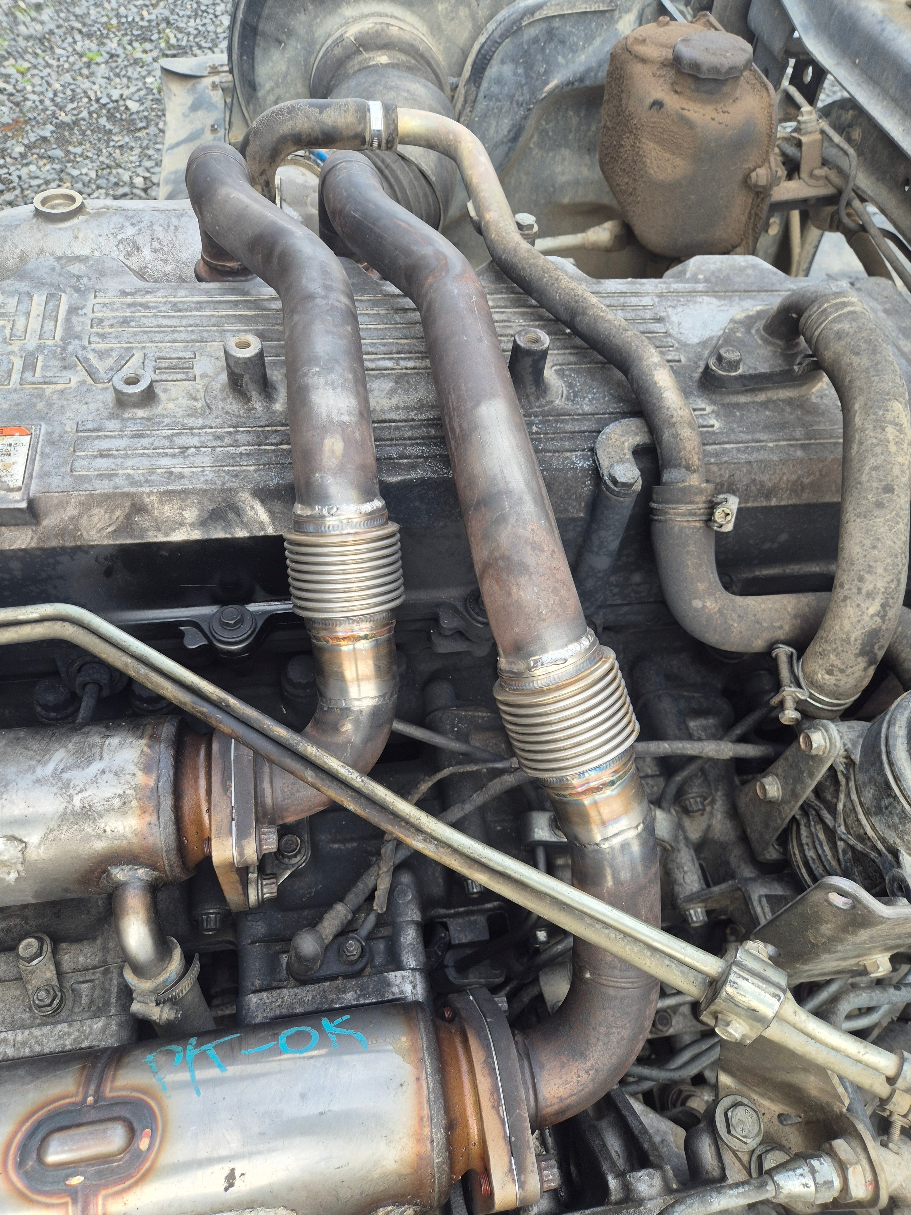 Stainless steel exhaust expansion bellows fitted to Fuso EGR crossover tubes, a reliable replacement solution for now-obsolete genuine parts.